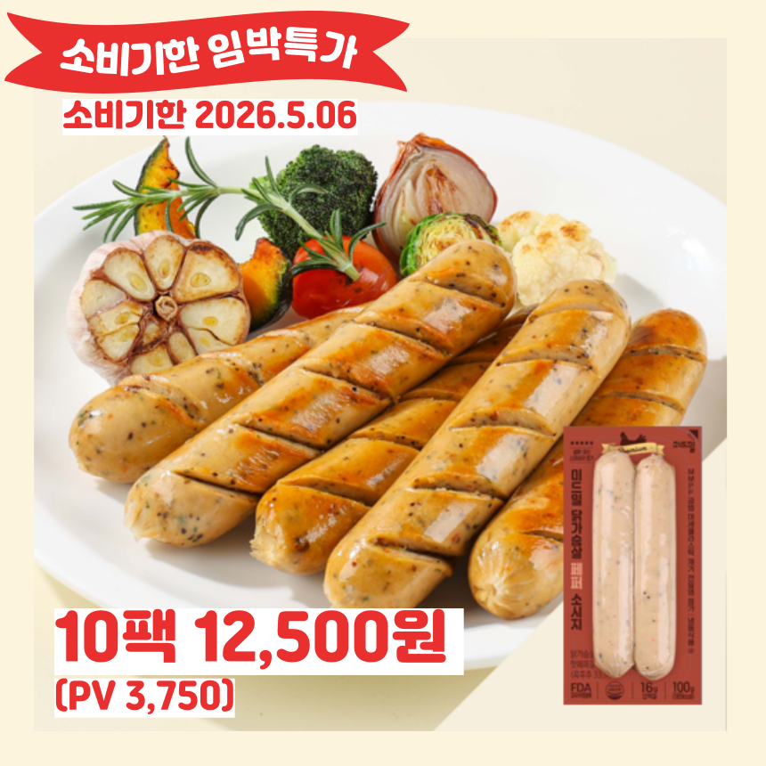 소비기한 임박 특가 스테비아 닭가슴살 페퍼 소시지 10팩
