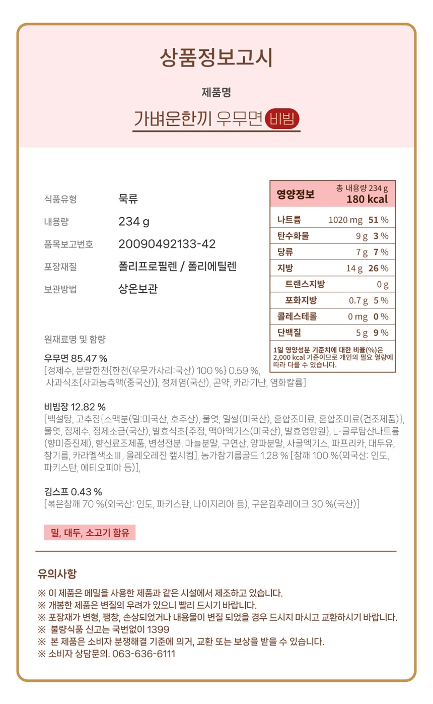 가벼운한끼 우무면 비빔면 234g