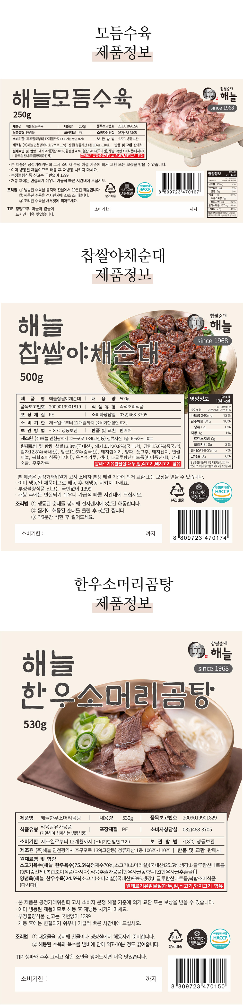 해늘 찹쌀 야채순대 500g