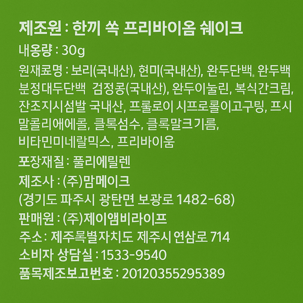 한끼쏙프리바이옴 쉐이크 10개입