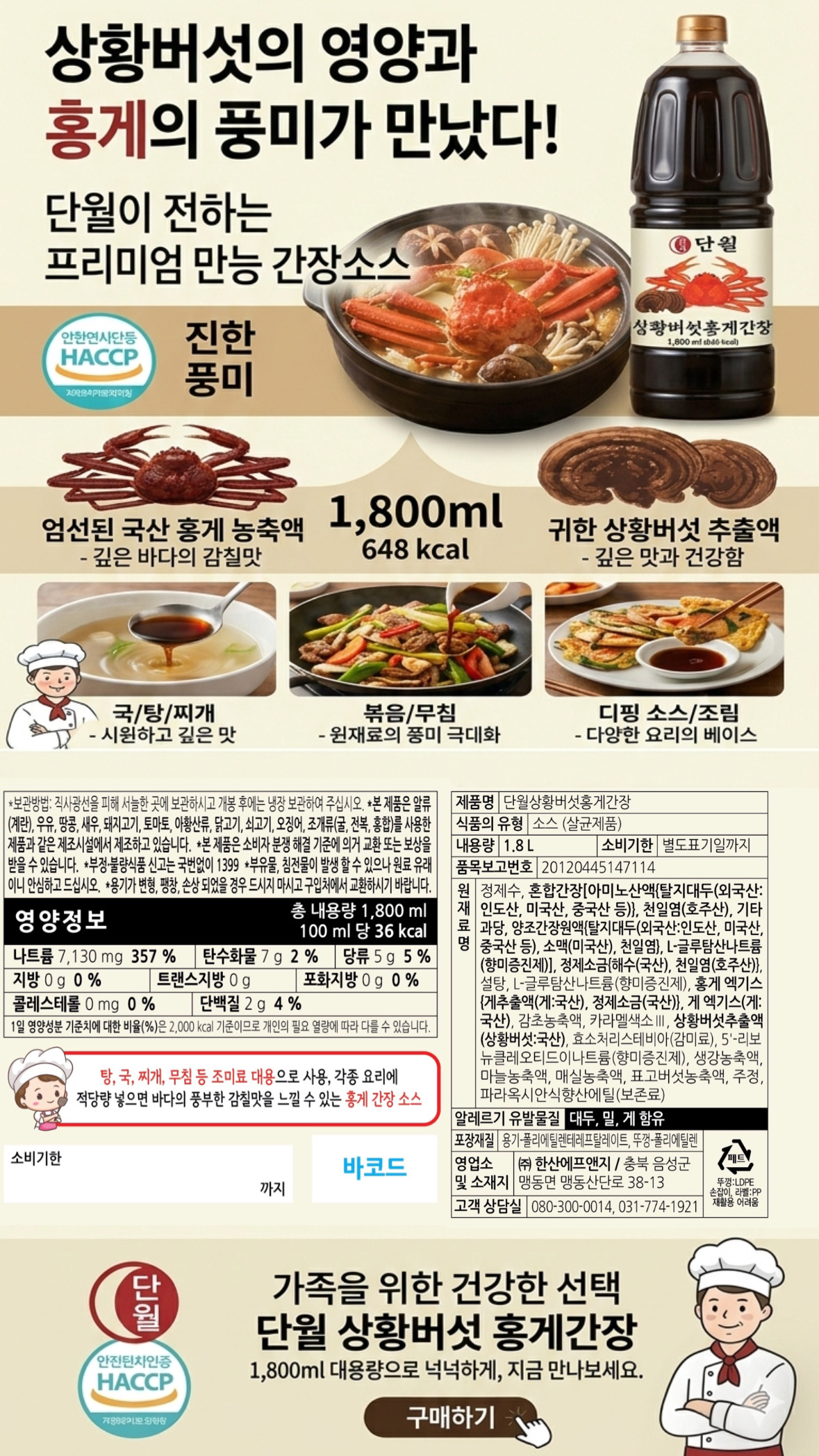 프로관 단월 상황버섯홍게간장 1.8L*2병~6병