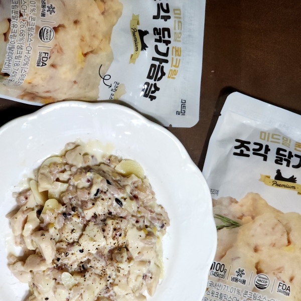미드밀 콘크림 조각 닭가슴살