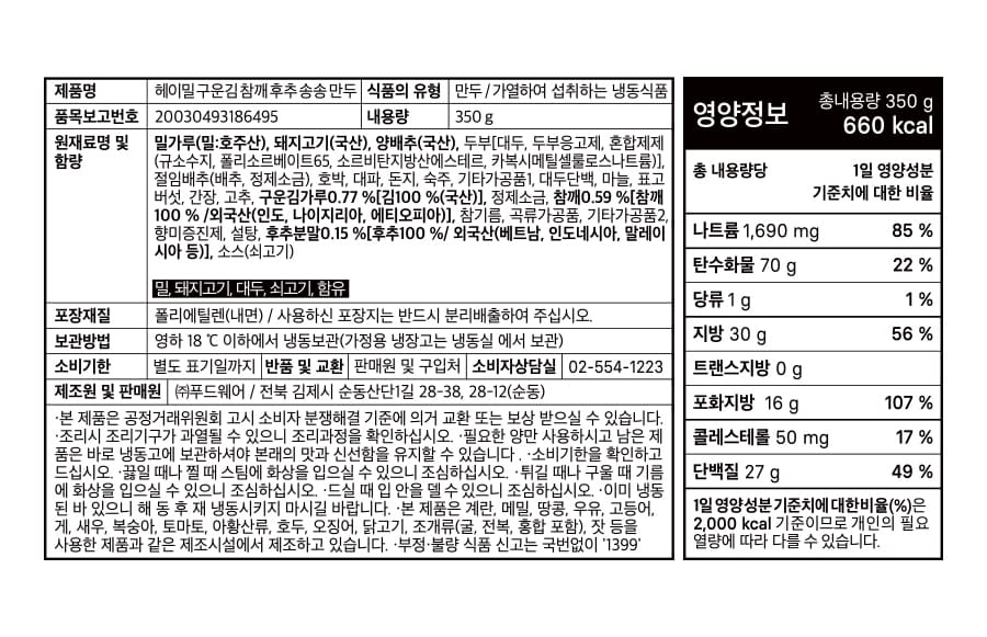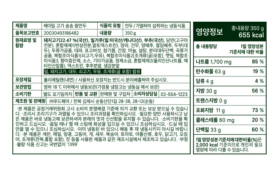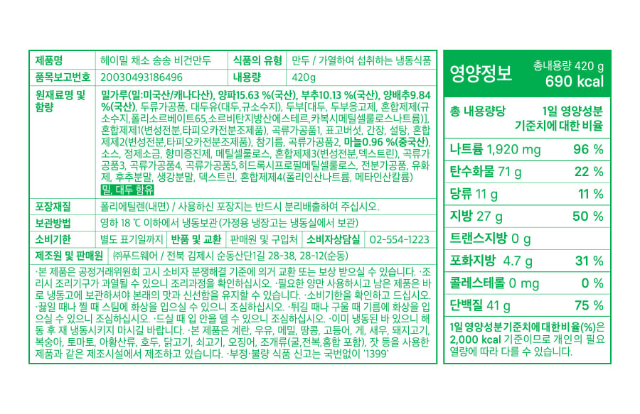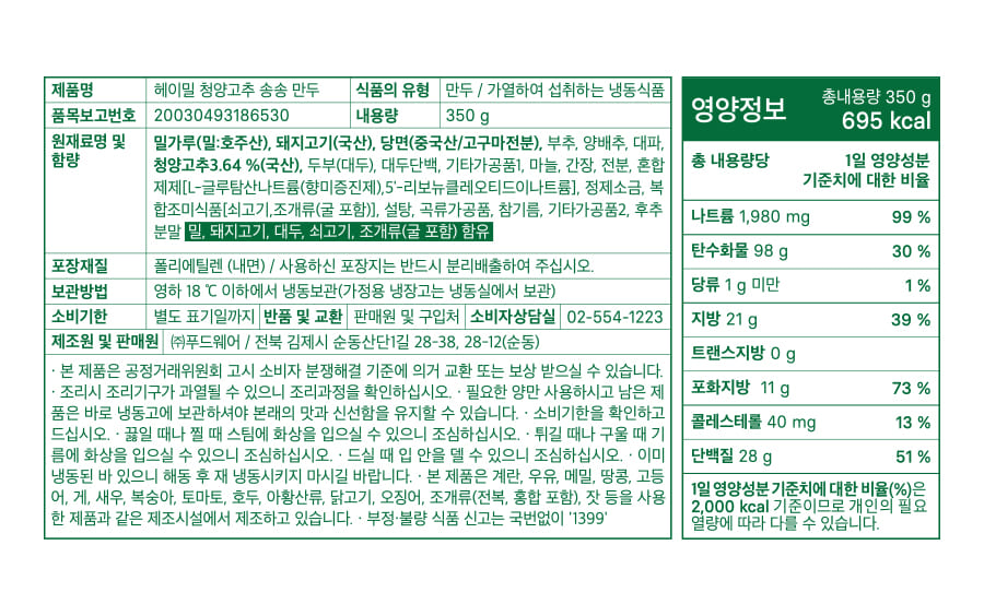 헤이밀 송송만두 12팩